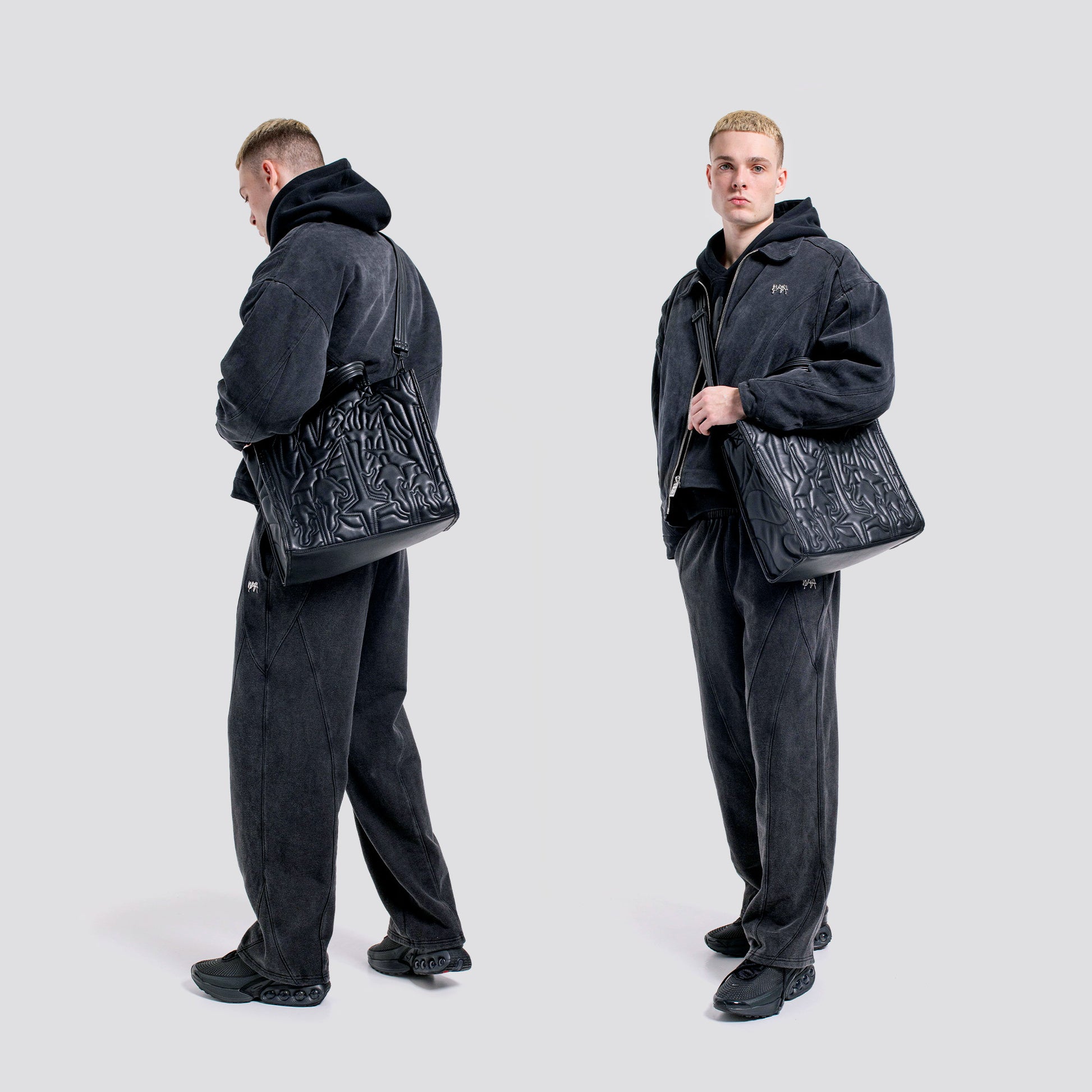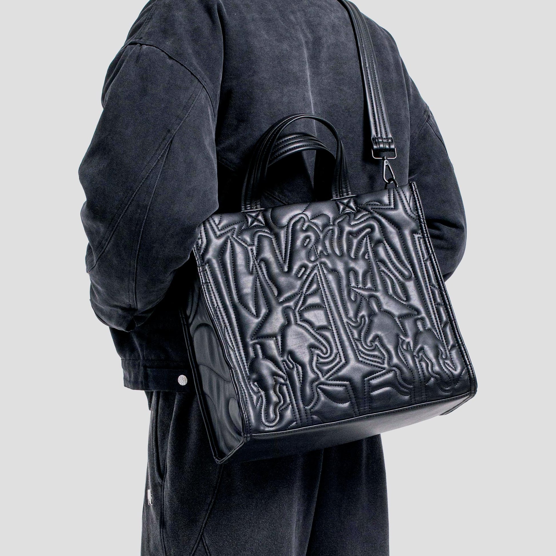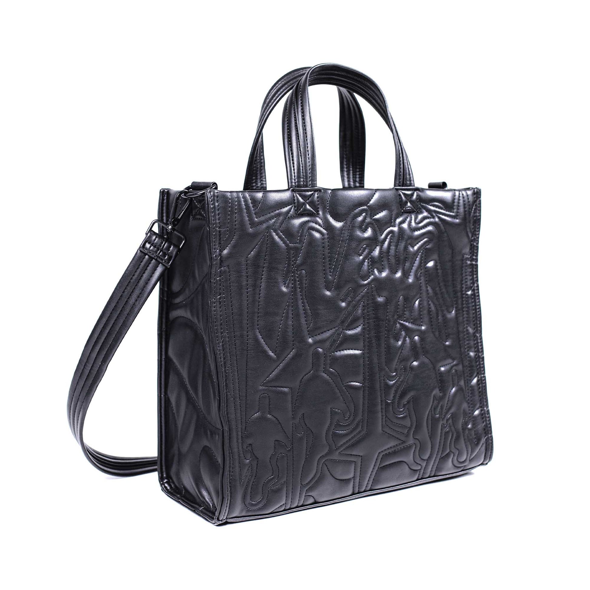 The Messenger Bag "Nightwalkers" is made in PU-Leather and has an embroidered visual on it.