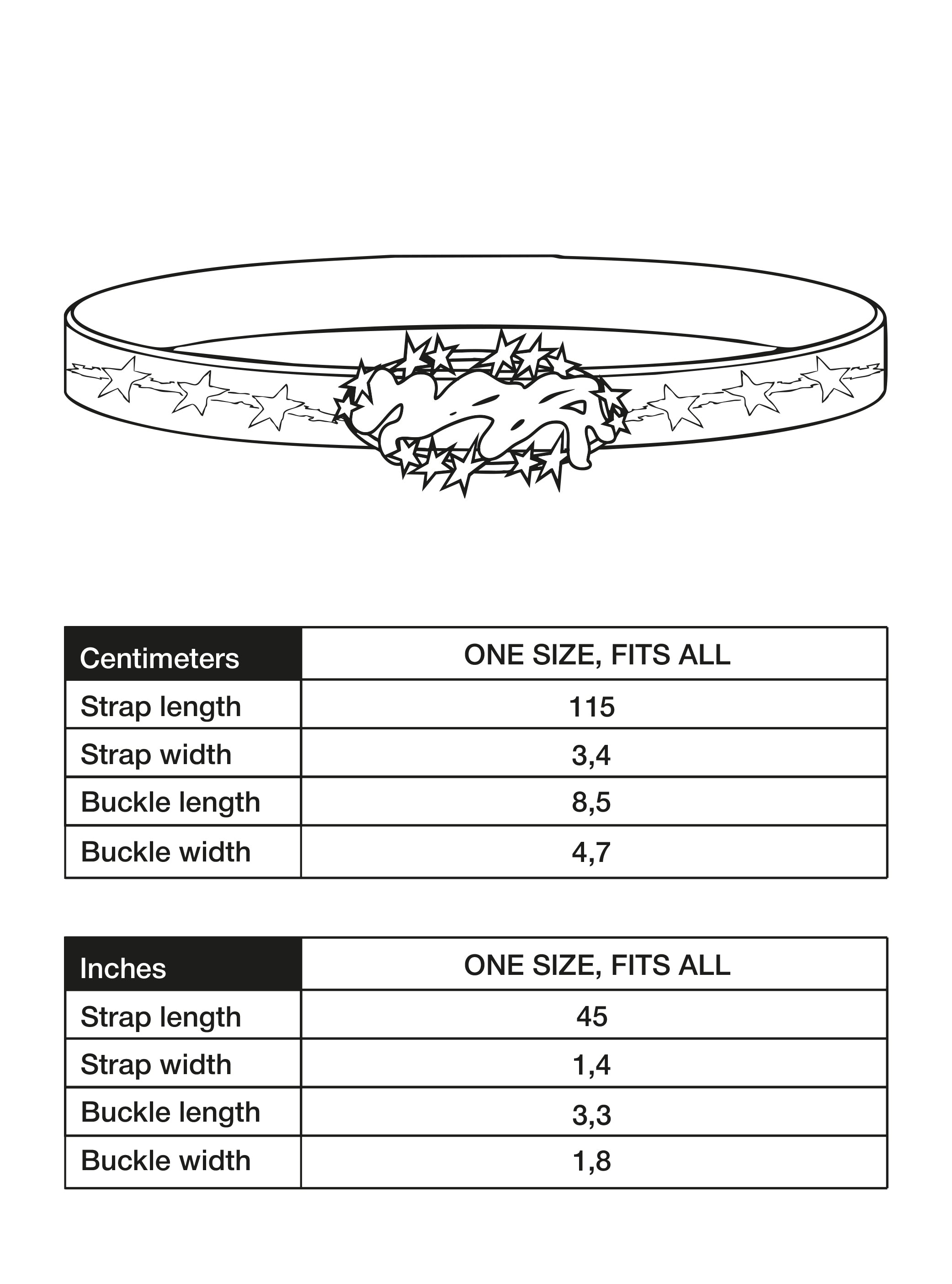 The Automatic All Star Belt is made in zinc alloy. The strap is crafted from high-quality faux leather and features a continuous debossed pattern of stars and Weyz logos.