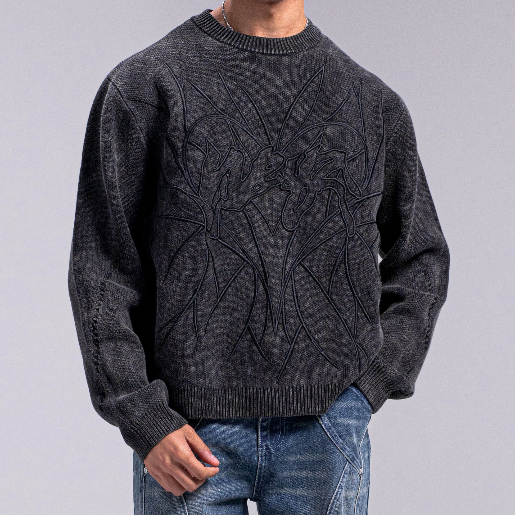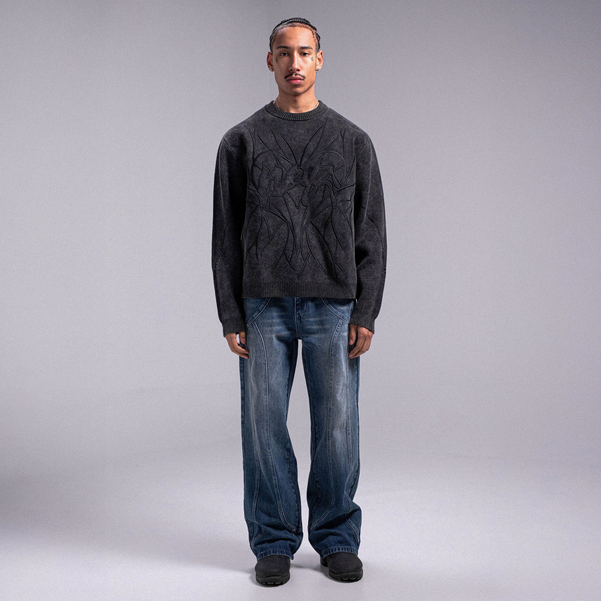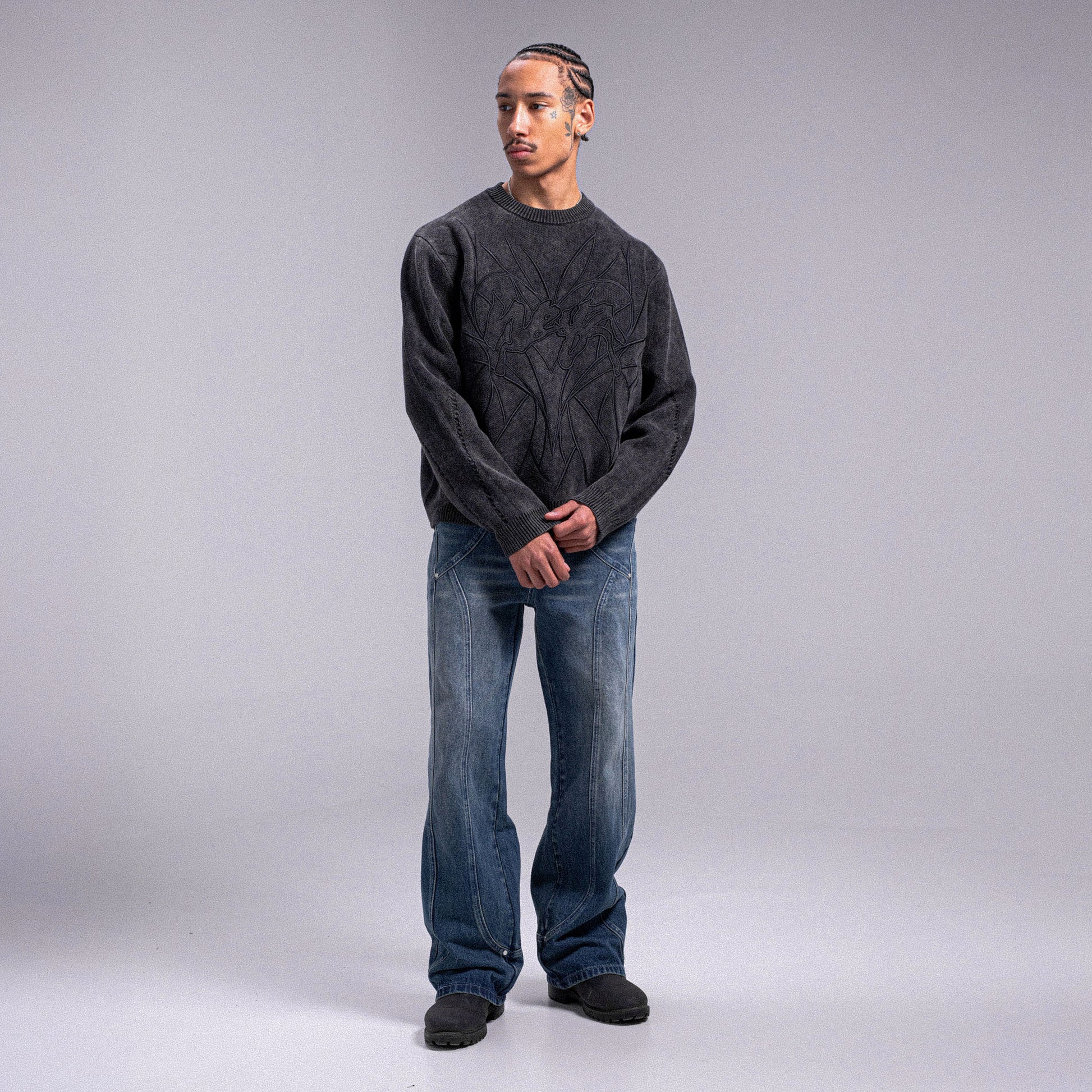 The model is 1m80 (5'9"), 65kg (143lbs) and wears a knit size M.