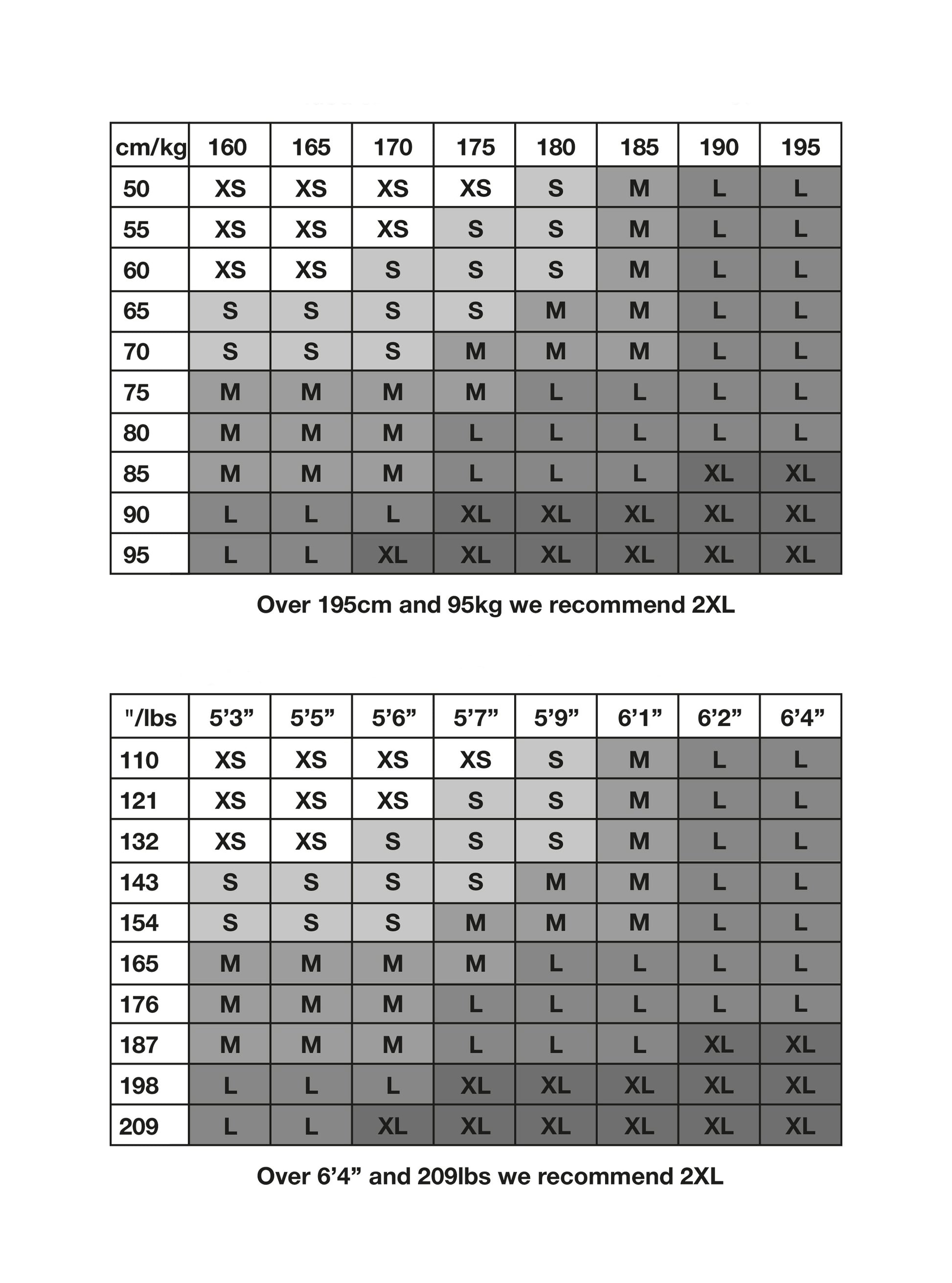 Size chart We recommend: Close