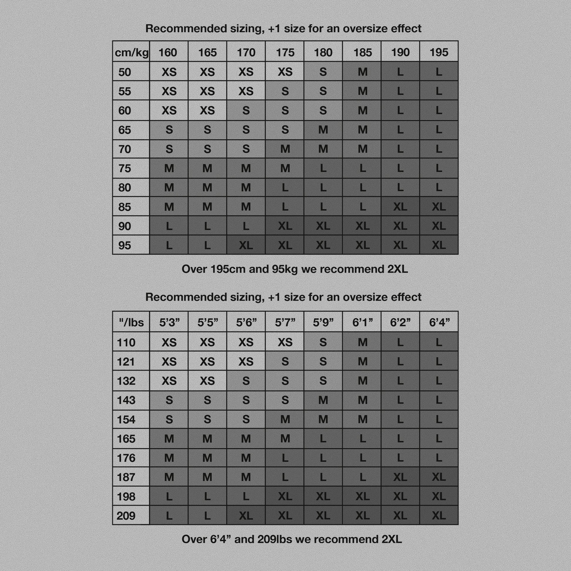 The model is 1m80 (5'9"), 65kg (143lbs) and wears a t-shirt size L for an oversize effect.