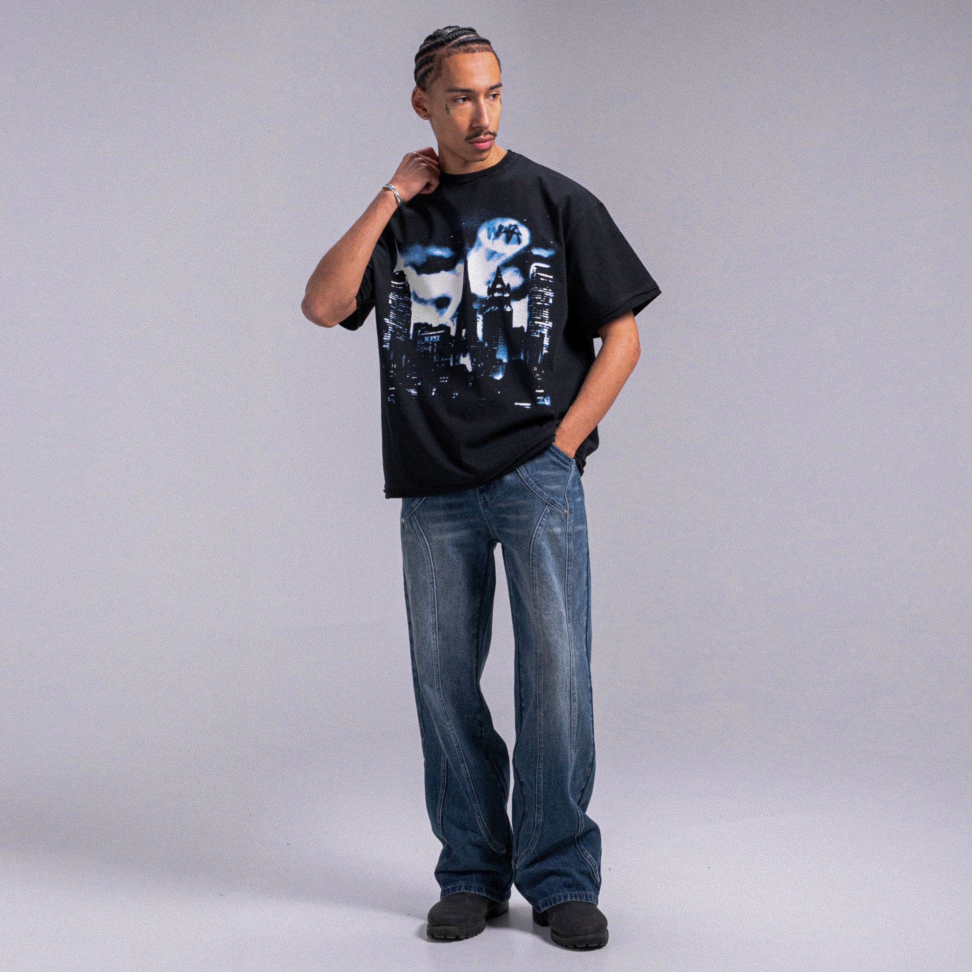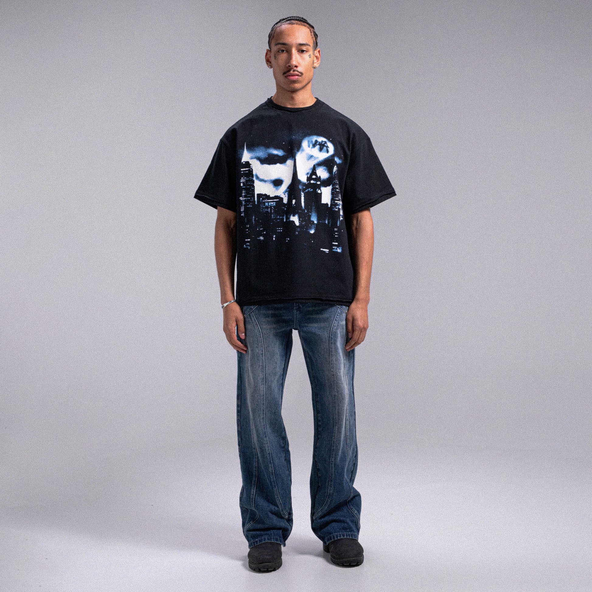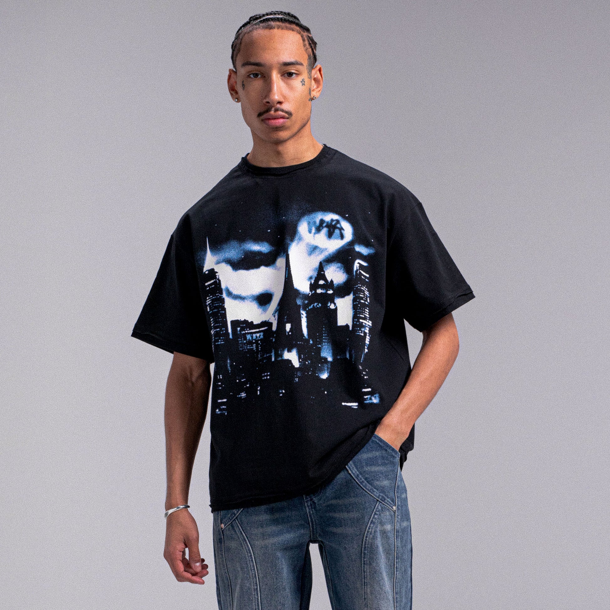 - Screen-printed design on the front, inspired by a Batman poster and reimagined through the creative lens of Weyz.