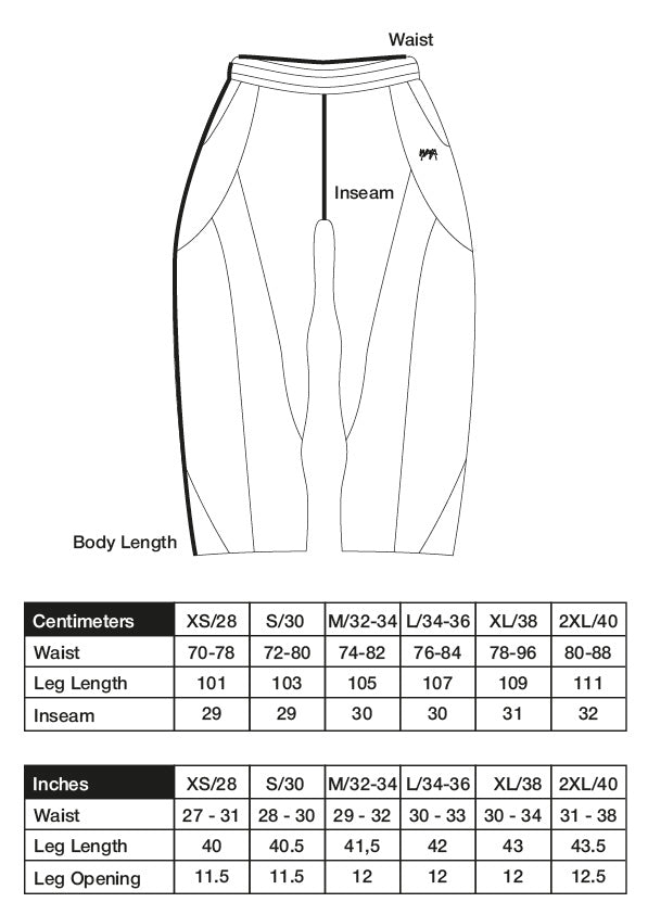 The model is 1m80 (5'9"), 65kg (143lbs) and wears a jogger size L.