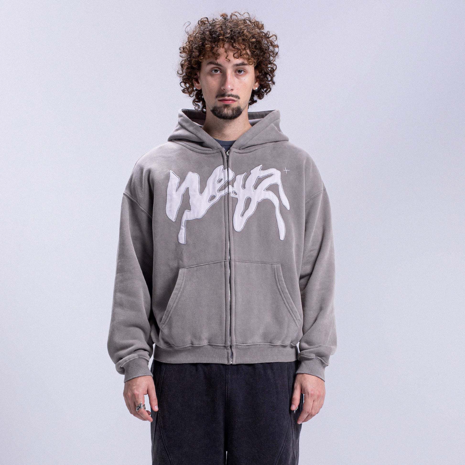 This Vintage Zipper Hoodie* features an oversized shoulder fit and a classic length. The fabric composition is 87% cotton and 13% polyester, with a washed treatment for a vintage effect.