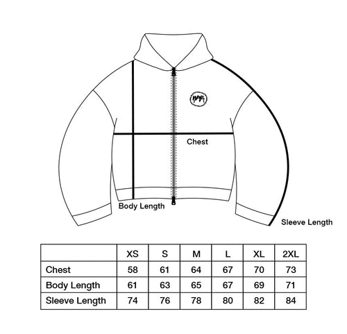 The "CROWN" Double Zip Hoodie is made out of 50% polyester and 50% cotton.