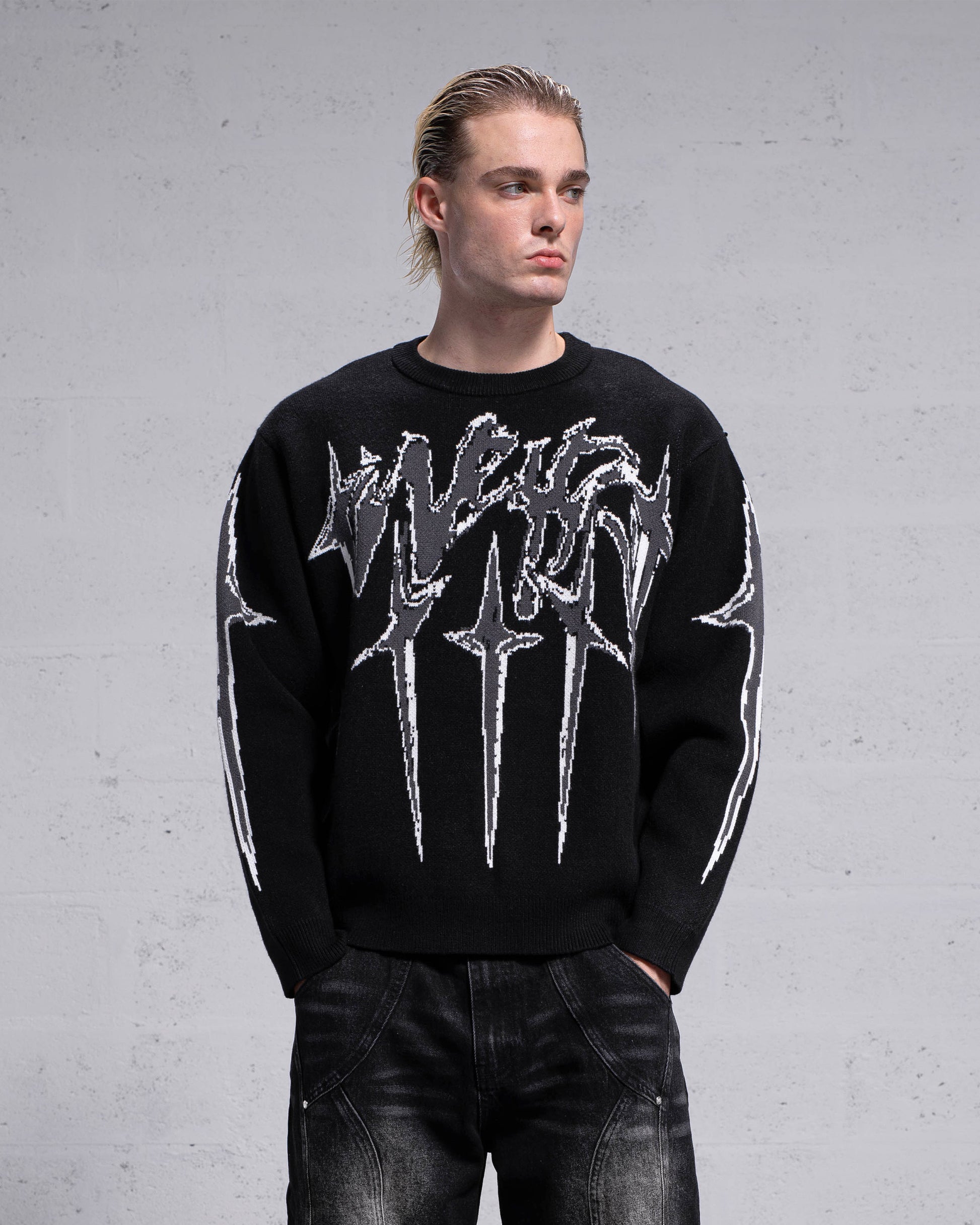 • "WEYZ STARS" knit pattern on the front and sleeves.