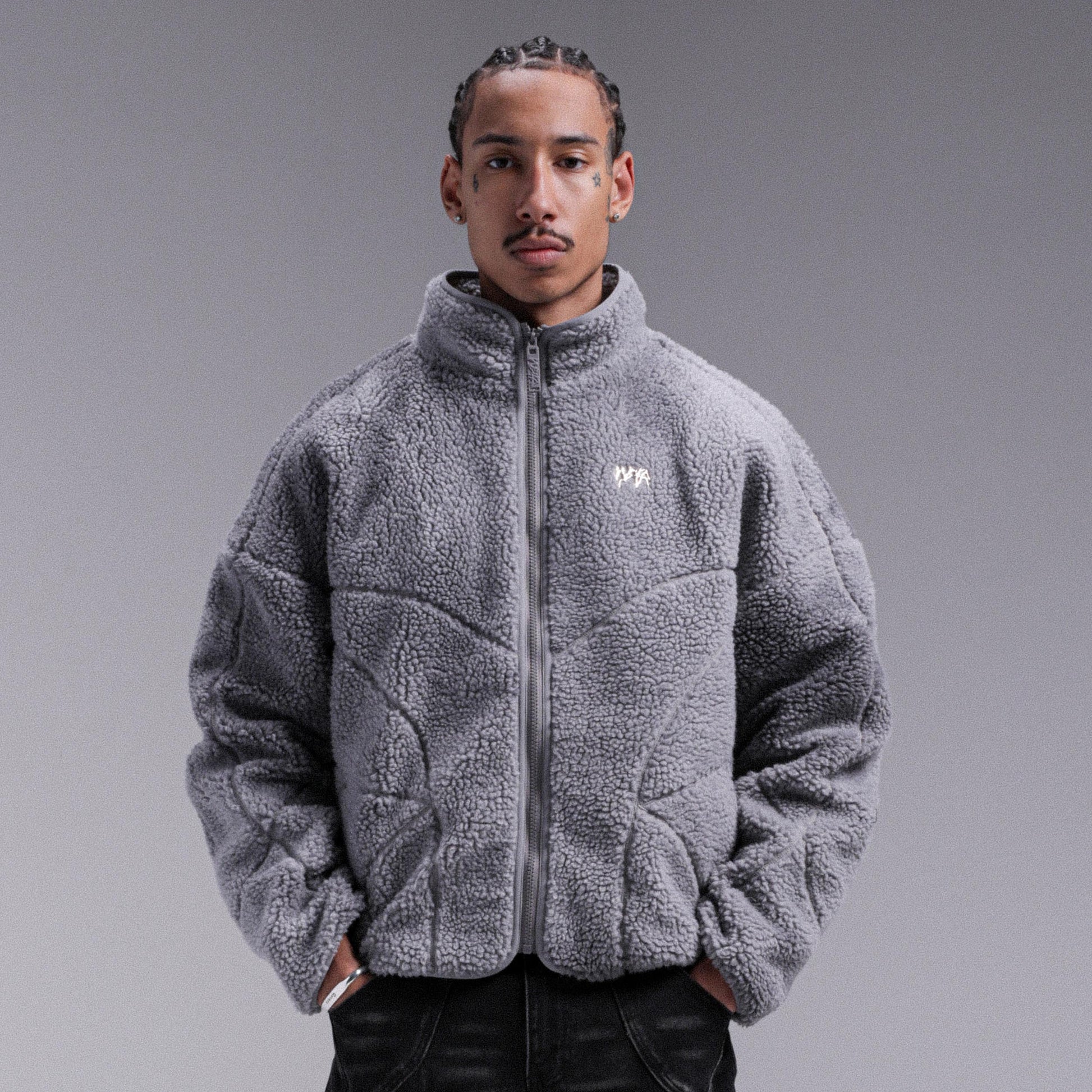 The "MOON" Sherpa Jacket is made out of 100% polyester.