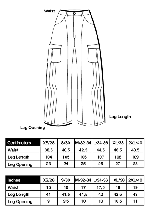 La coupe présente des jambes larges tout en conservant une silhouette droite.