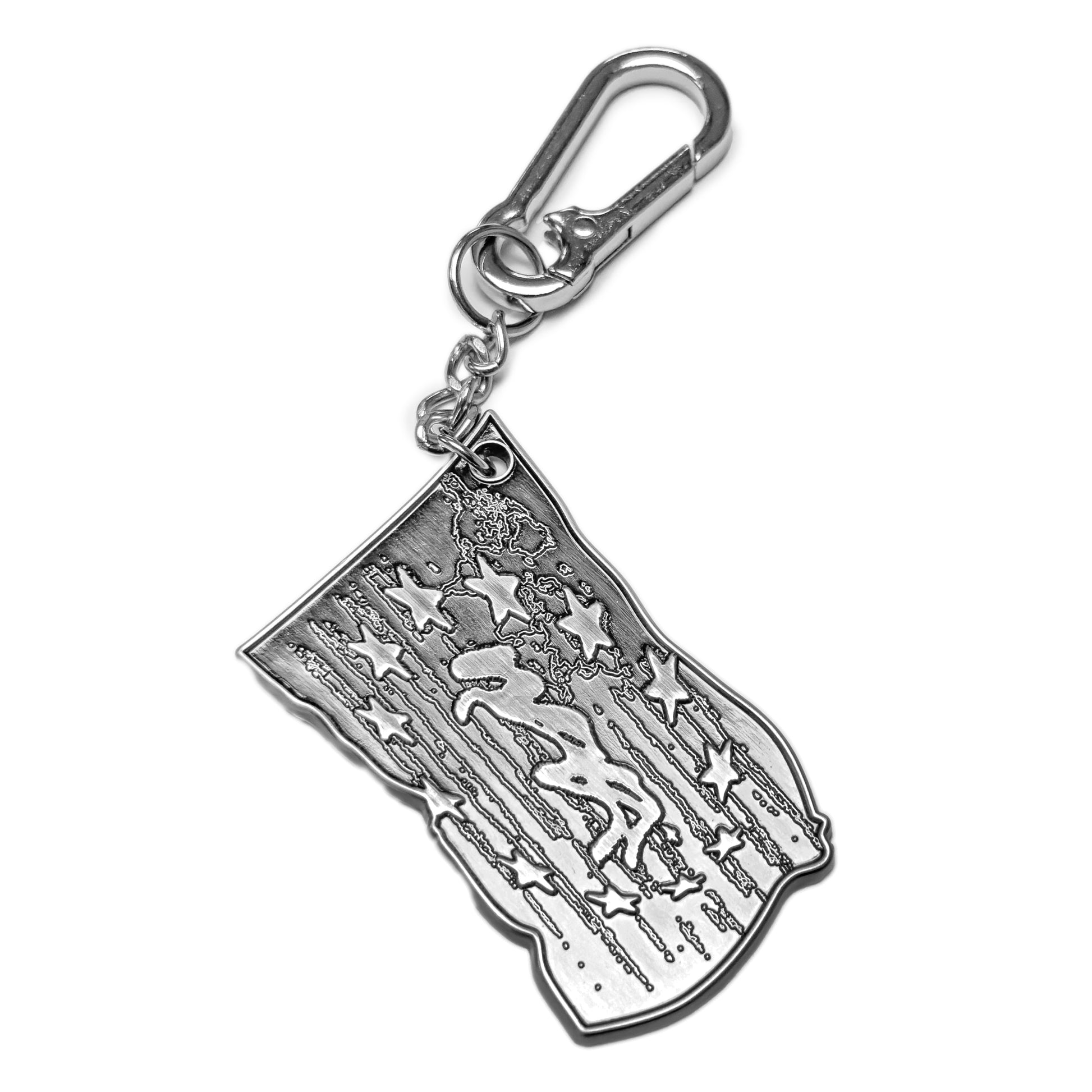 Porte-clés métallique représentant le drapeau « WEYZ » avec une finition argentée polie.